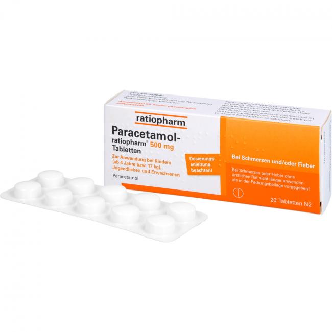 Die Gesamtdosis an Paracetamol darf für Erwachsene und Jugendliche ab 12 Jahren bzw. ab 43 kg Körpergewicht 4.000 mg Paracetamol (entsprechend 8 Tabletten Paracetamol-ratiopharm) täglich und für Kinder 60 mg/kg/Tag nicht übersteigen. Bei einer Überdosierung treten im Allgemeinen innerhalb von 24 Stunden Beschwerden auf, die Übelkeit, Erbrechen, Appetitlosigkeit, Blässe und Bauchschmerzen umfassen. Wenn eine größere Menge Paracetamol-ratiopharm eingenommen wurde als empfohlen, rufen Sie den nächst erreichbaren Arzt zu Hilfe!