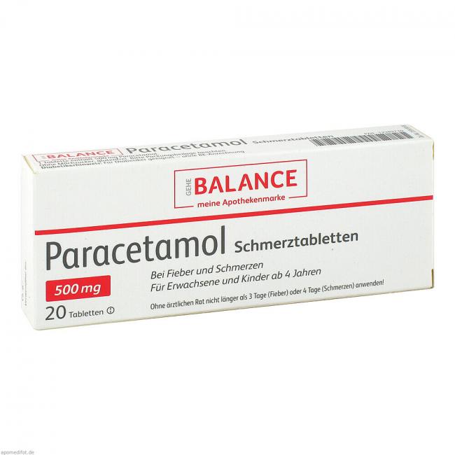 Paracetamol Schmerztabletten Balance. Anwendungsgebiete: bei leichten bis mäßig starken Schmerzen, wie Kopfschmerzen, Zahnschmerzen, Regelschmerzen und/oder bei Fieber.