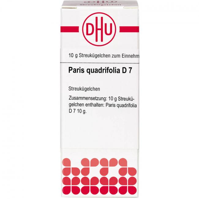 Paris quadrifolia D 7. Anwendungsgebiete: Registriertes homöopathisches Arzneimittel, daher ohne Angabe einer therapeutischen Indikation. Warnhinweis: Dieses Arzneimittel enthält Sucrose (Saccharose / Zucker).