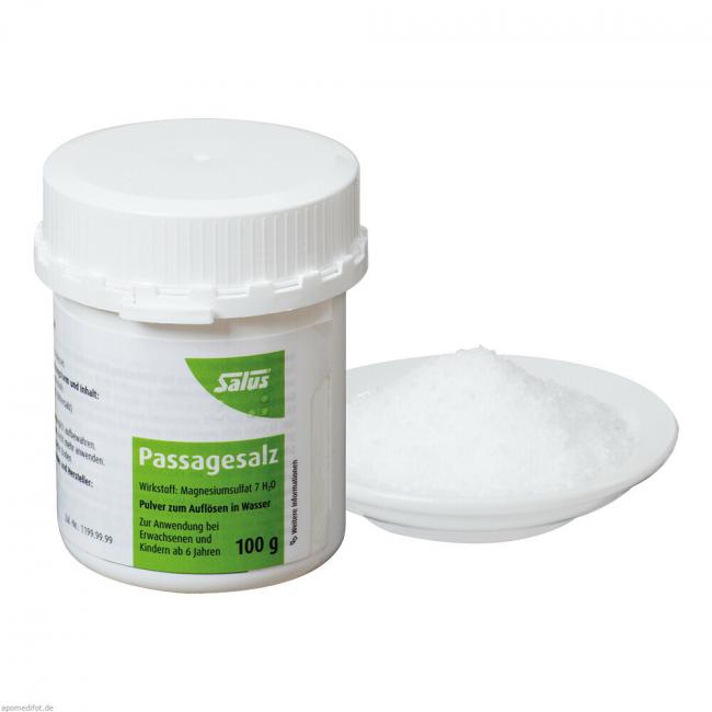 Salus Passagesalz. Wirkstoff: Magnesiumsulfat 7 H2O. Anwendungsgebiete: Zur kurzfristigen Anwendung bei Verstopfung (Obstipation); zur Darmentleerung vor diagnostischen und therapeutischen Maßnahmen.