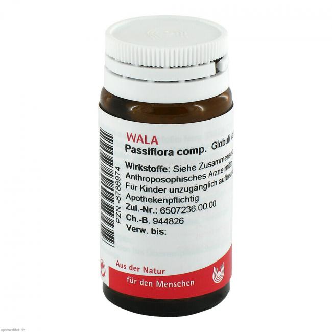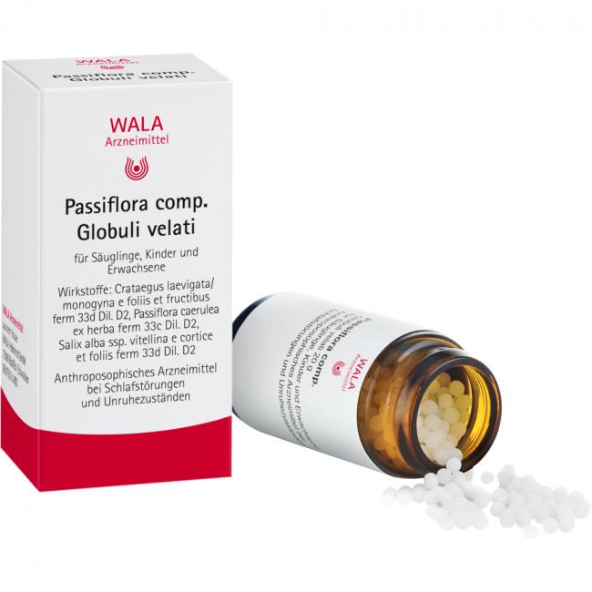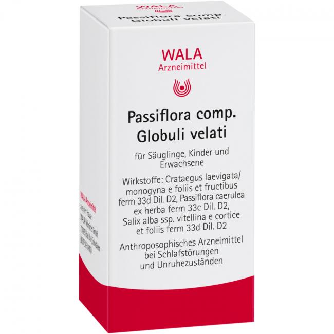 Passiflora comp., Globuli velati. Anwendungsgebiete: Gemäß der anthroposophischen Menschen- und Naturerkenntnis. Dazu gehören: Schlafstörungen, nervöse Unruhe, Herzangst.