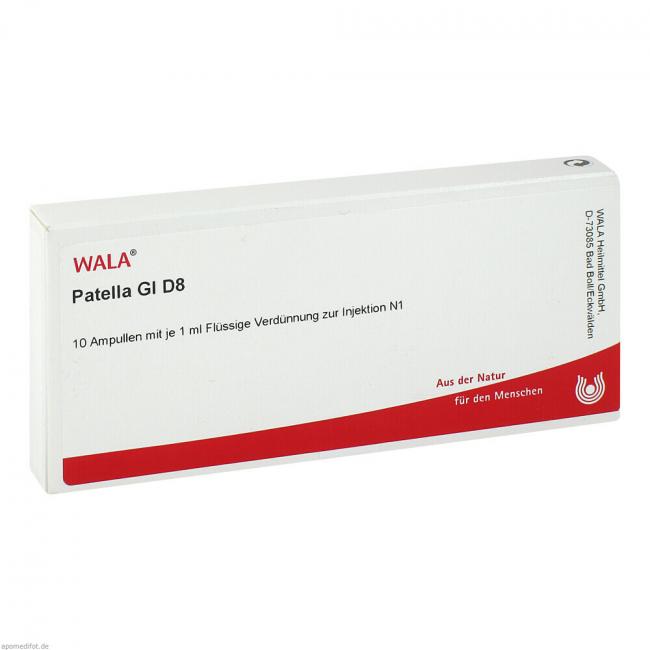 Patella Gl D8, Flüssige Verdünnung zur Injektion. Wirkstoff: Patella bovis Gl. Anwendungsgebiete: Registriertes homöopathisches Arzneimittel der anthroposophischen Therapierichtung, daher ohne Angabe einer therapeutischen Indikation.
