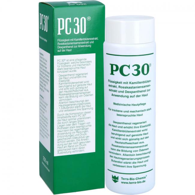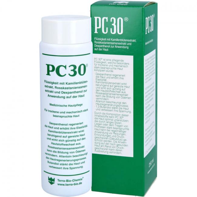 PC 30 Flüssigkeit mit Kamillenblütenextrakt, Rosskastaniensamenextrakt und Dexpanthenol zur Anwendung auf der Haut