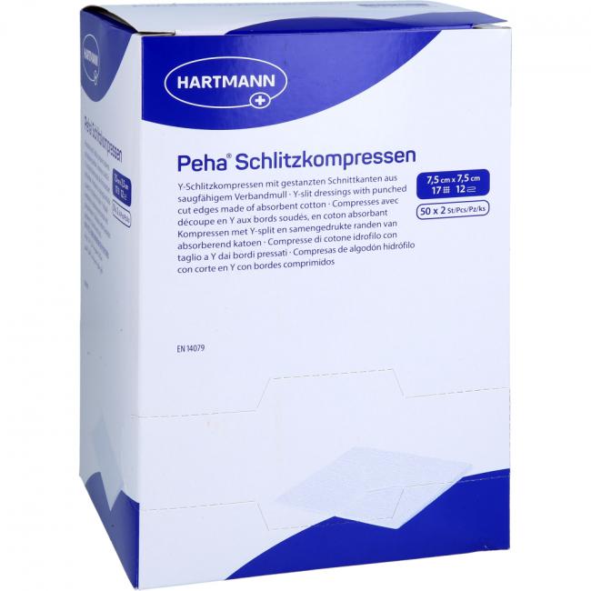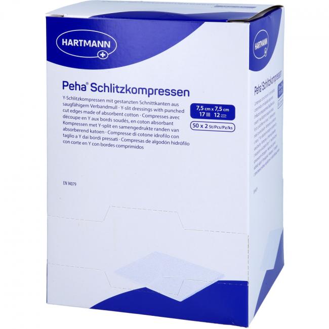 Produktinformationen PEHA SCHLITZKOMPRESSEN 7,5x7,5 cm steril, 50x2 Stück