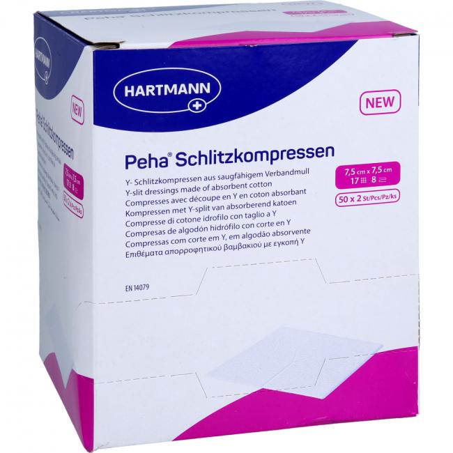 Pflichtangaben PEHA SCHLITZKOMPRESSEN 7,5x7,5 cm steril 8fach, 50x2 Stück
