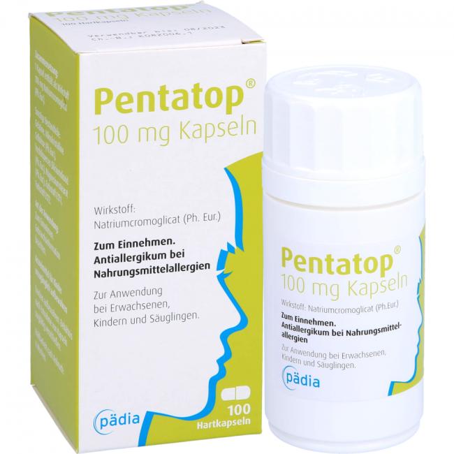 Pentatop 100 mg Kapseln, Hartkapseln. Anwendungsgebiete: bei Nahrungsmittelallergien, die nicht durch Verzicht auf das auslösende Nahrungsmittel (Allergenkarenz) behandelbar sind.