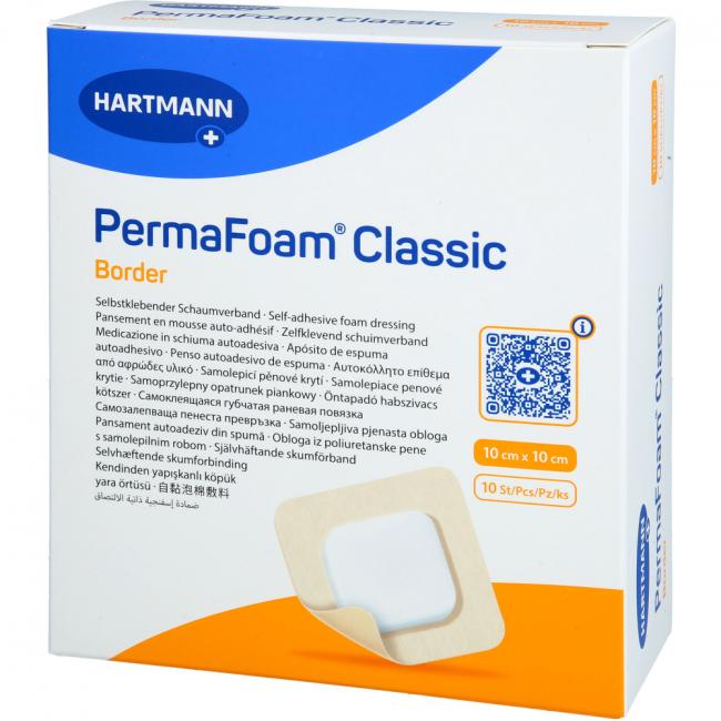 Pflichtangaben PERMAFOAM classic Border Schaumverband 10x10 cm, 10 Stück