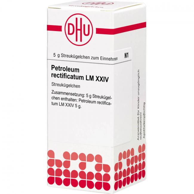 Petroleum rectificatum LM XXIV. Anwendungsgebiete: Registriertes homöopathisches Arzneimittel, daher ohne Angabe einer therapeutischen Indikation. Warnhinweis: Dieses Arzneimittel enthält Sucrose (Saccharose / Zucker).