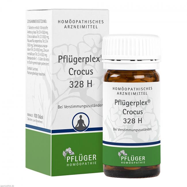 Pflügerplex Crocus 328 H. Anwendungsgebiete: Die Anwendungsgebiete leiten sich von den homöopathischen Arzneimittelbildern ab. Dazu gehört: Verstimmungszustände. Warnhinweis: Enthält Lactose.