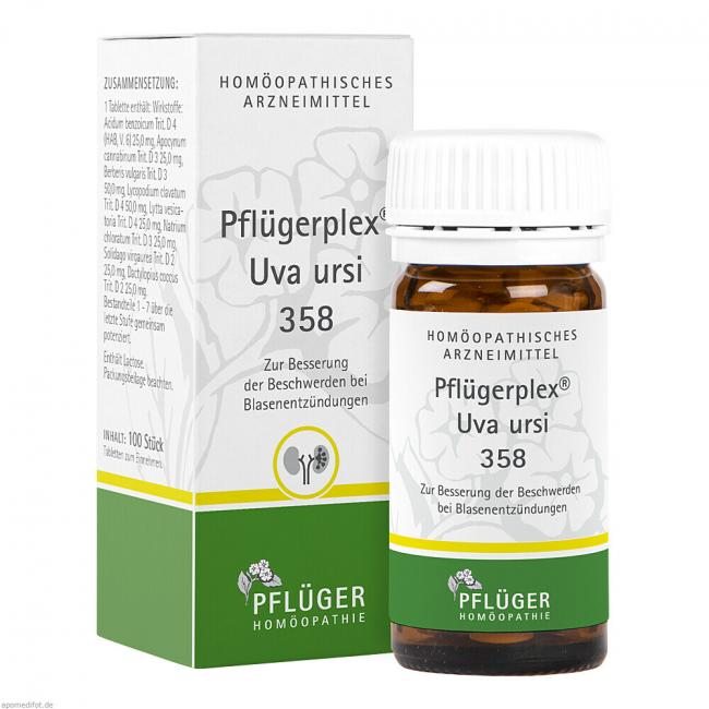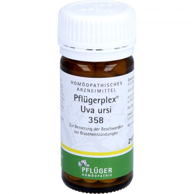 Pflügerplex Uva ursi 358 ist ein homöopathisches Arzneimittel bei Erkrankungen der Harnorgane. Die Anwendungsgebiete leiten sich von den homöopathischen Arzneimittelbildern ab. Dazu gehört: Besserung der Beschwerden bei Blasenentzündungen.