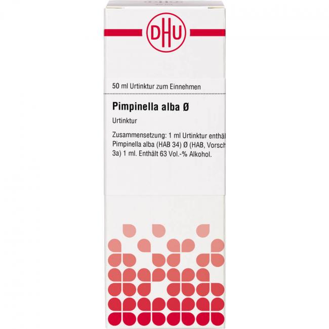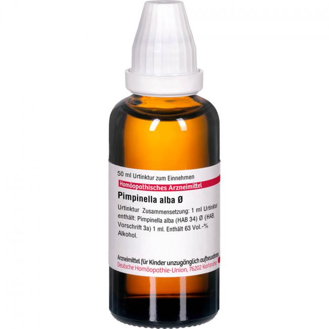 Pimpinella Alba Urtinktur. Anwendungsgebiete: Registriertes homöopathisches Arzneimittel, daher ohne Angabe einer therapeutischen Indikation. Warnhinweis: Enthält 63 Vol.-% Alkohol.