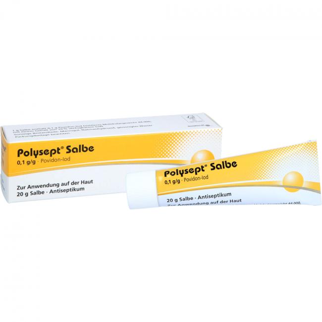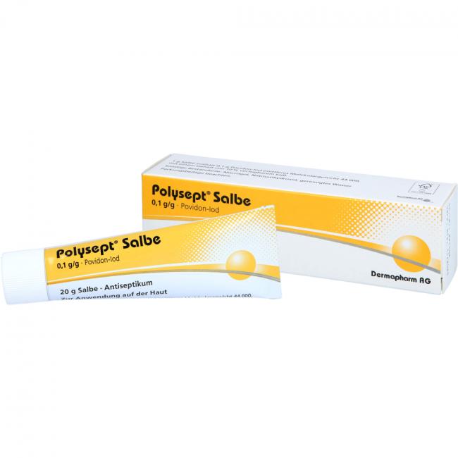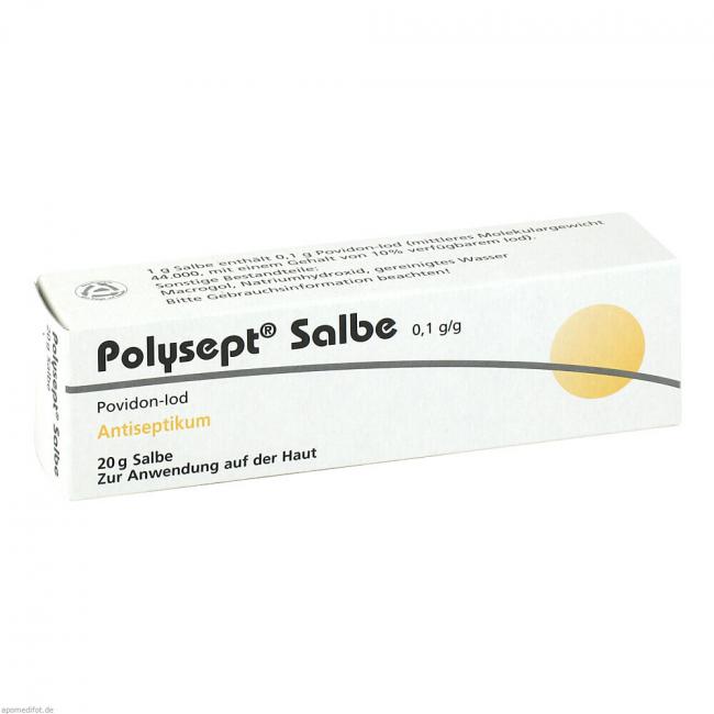 Wirkstoff: Povidon-Iod. Anwendungsgebiete: Polysept Salbe ist ein keimtötendes Mittel (Antiseptikum) zur Anwendung auf Haut und Wunden Polysept Salbe wird wiederholt, zeitlich begrenzt angewendet zur antiseptischen Wundbehandlung bei geschädigter Haut (z.B. Druckgeschwüre, Unterschenkelgeschwüre), oberflächlichen Wunden, Verbrennungen, infizierten und superinfizierten Hauterkrankungen.