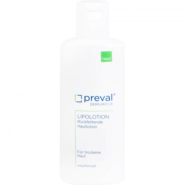 Die rückfettende Hautlotion preval LIPOLOTION versorgt die Haut mit viel Feuchtigkeit versorgt und hinterlässt nach dem Auftragen einen angenehm kühlenden Effekt. Sie zieht schnell ein, ist höchst verträglich, verleiht der Haut ein angenehm gepflegtes Gefühl und hinterlässt keinen Fettfilm. Durch einen pH-Wert von 5,5 werden die Abwehrkräfte der Haut gegen Schadstoffe gestärkt. Inerte Lipide verhindern die Entwicklung von freien Radikalen und pflegen die Haut besonders nach der Einwirkung von UV-Licht.