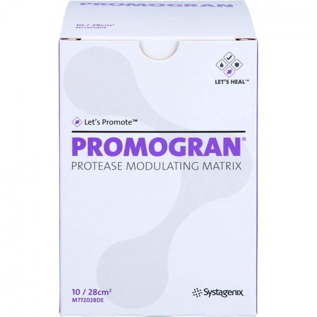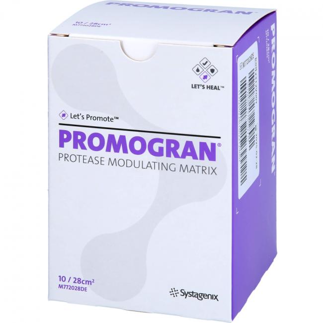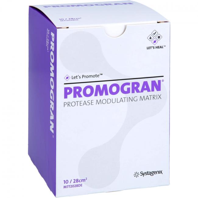 - Promogran ist eine sterile, gefriergetrocknete Matrix aus 55% Kollagen und 45% ORC (oxidierte regenerierte Cellulose).