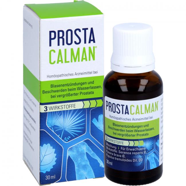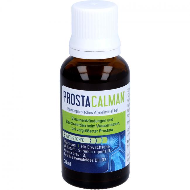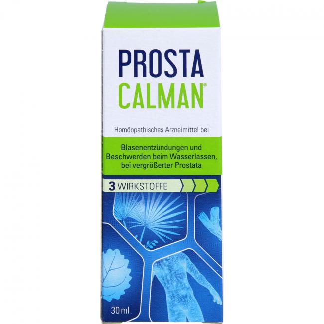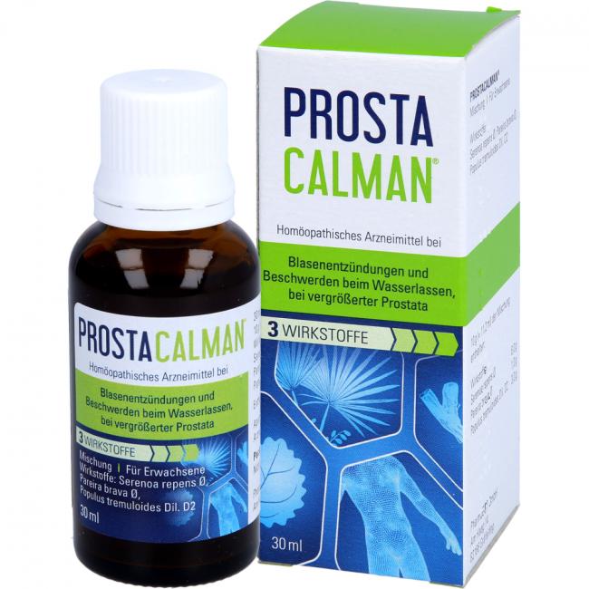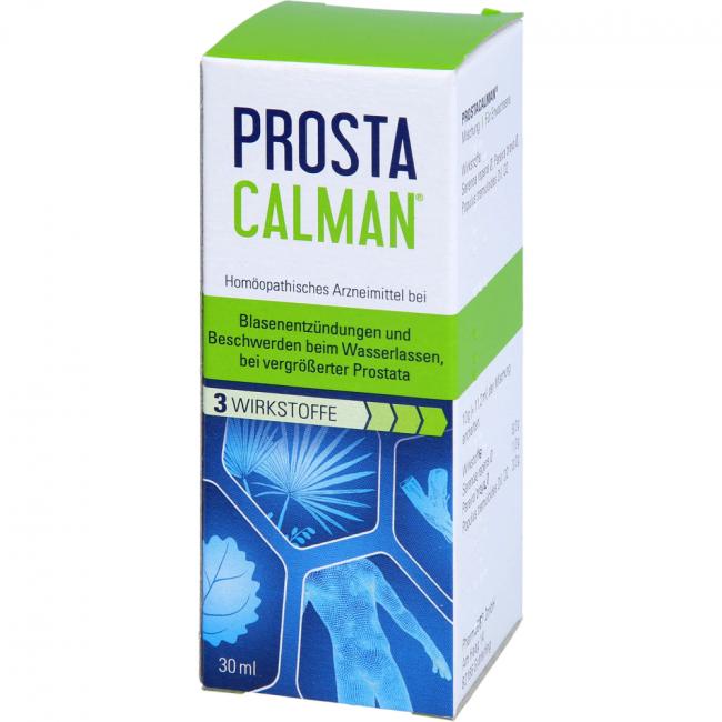 Prostacalman Mischung. Anwendungsgebiete: Prostacalman wird angewendet entsprechend dem homöopathischen Arzneimittelbild. Dazu gehören: Blasenentzündungen und Beschwerden beim Wasserlassen, bei vergrößerter Prostata. Warnhinweis: Enthält 69 Vol.-% Alkohol!