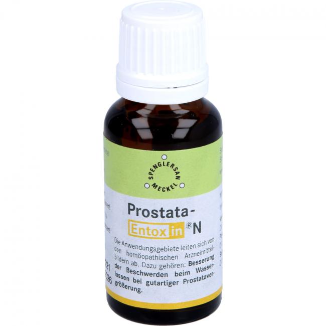 Prostata-Entoxin N, Mischung. Wirkstoff: Kreosotum Dil. D1, Populus tremuloides Ø, Sabal serrulatum Ø. Anwendungsgebiete: Das Anwendungsgebiet leitet sich von den homöopathischen Arzneimittelbildern ab. Dazu gehört: Besserung der Beschwerden beim Wasserlassen bei gutartiger Prostatavergrößerung. Warnhinweis: Enthält 50,6 Vol.-% Alkohol!