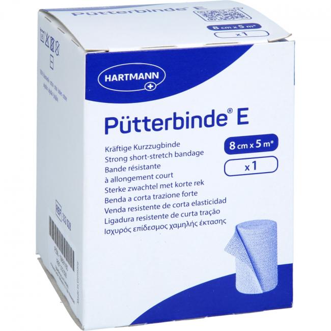 Für sehr starke Kompression, nach Varizenverödungen, bei allen akuten und chronischen venösen Stauungsödemen, Ulcera cruris und Thrombophlebitis. Verfügbar in verschiedenen Breiten in Faltschachteln mit 10 Binden für den bedarfsgerechten Einsatz. Die besonders kräftige Bindenqualität der Pütter E ermöglicht außerordentlich haltbare Verbände mit dauerhafter Kompressionswirkung.