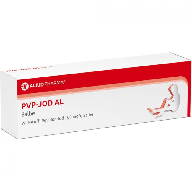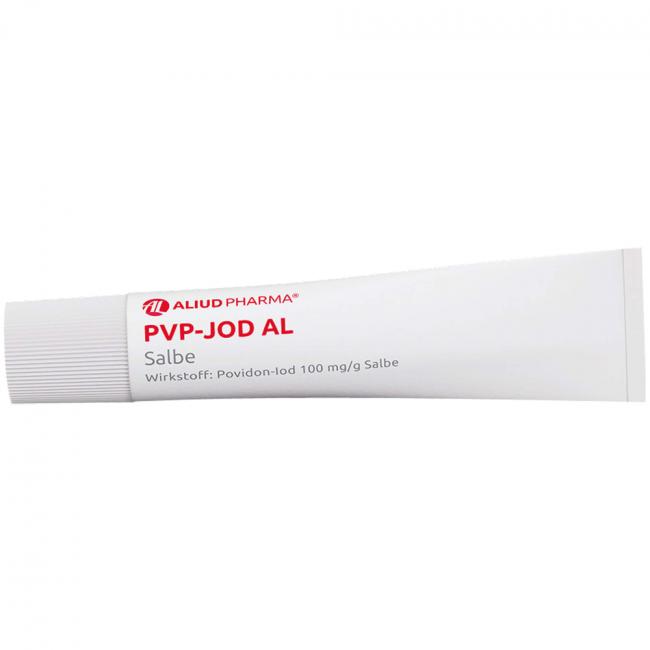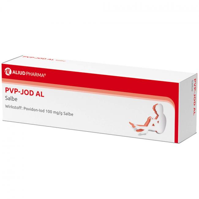 PVP-Jod AL Salbe. Wirkstoff: Povidon-Iod 100 mg/g Salbe. Anwendungsgebiete: Zur wiederholten, zeitlich begrenzten Anwendung als Antiseptikum bei geschädigter Haut wie z. B. Decubitus (Druckgeschwür), Ulcus cruris (Unterschenkelgeschwür), oberflächlichen Wunden und Verbrennungen, infizierten und superinfizierten Hauterkrankungen.