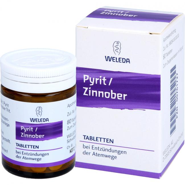 Pyrit/Zinnober Tabletten. Anwendungsgebiete: Gemäß der anthroposophischen Menschen- und Naturerkenntnis gehören zu den Anwendungsgebieten: Entzündungen der Atemwege, z.B. der Rachenschleimhaut, des Kehlkopfes und der Bronchien.