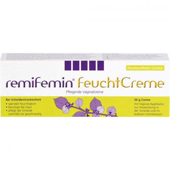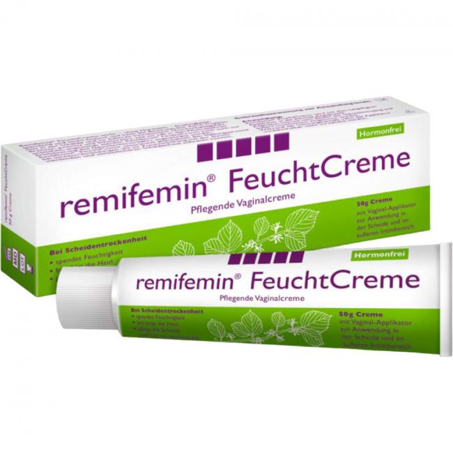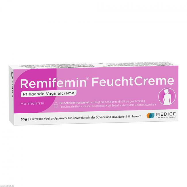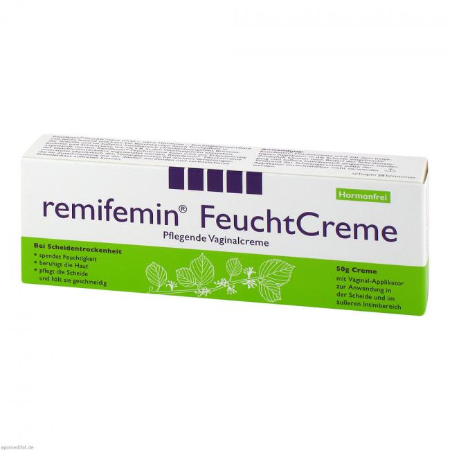Remifemin FeuchtCreme. Anwendungsgebiete: Bei Beschwerden durch Trockenheit der Scheide und im äußeren Intimbereich (Trockenheitsgefühl, Brennen, Schmerzen beim Geschlechtsverkehr oder Juckreiz), wie sie z.B. in den Wechseljahren entstehen. Zur Erleichterung des Geschlechtsverkehrs. Unterstützt physikalisch den Heilungsprozess bei leichten Verletzungen, die im Zusammenhang mit der dünner werdenden und verletzlicheren Scheidenhaut auftreten können.