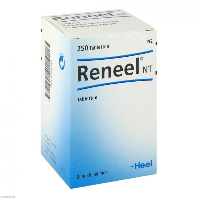 Reneel NT, Tabletten. Anwendungsgebiete: Die Anwendungsgebiete leiten sich von den homöopathischen Arzneimittelbildern ab. Dazu gehören: Besserung der Beschwerden bei entzündlichen Erkrankungen der ableitenden Harnwege.