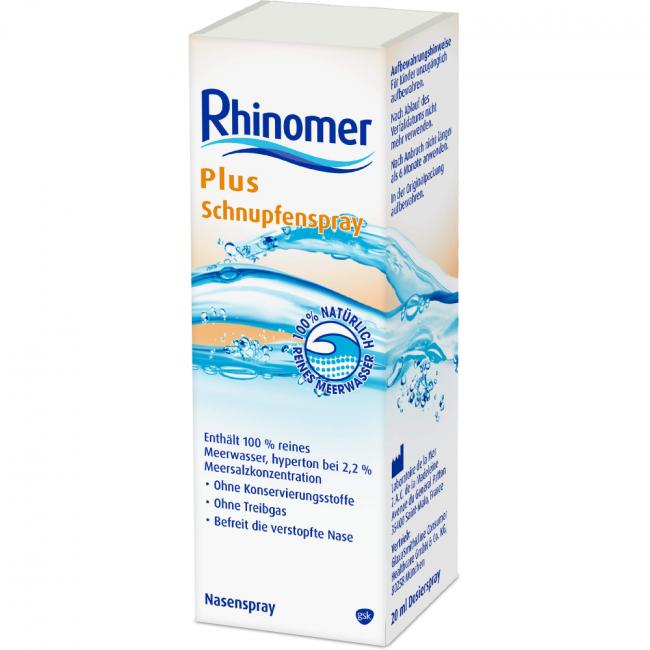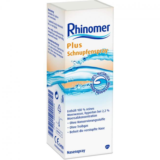 Rhinomer Plus Schnupfenspray ist ein konservierungsmittelfreies Nasenspray, das natürliches, steriles, hypertones Meerwasser enthält. Die unverdünnte Lösung enthält die für die Nasenschleimhaut wichtigen Mineralien und Spurenelemente, wie z.B. Calcium, Magnesium, Eisen und Zink.