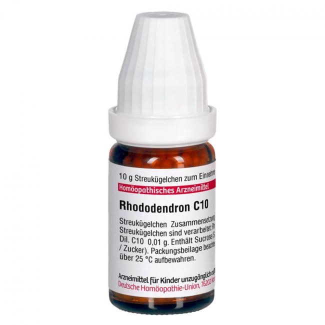 Rhododendron C 10 ist ein homöopathisches Arzneimittel. Registriertes homöopathisches Arzneimittel, daher ohne Angabe einer therapeutischen Indikation.