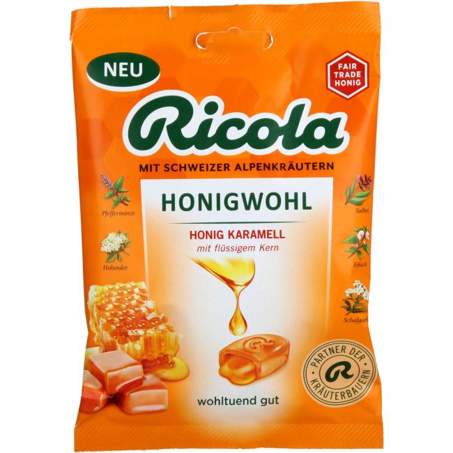 Pflichtangaben RICOLA m.Z.Beutel Honigwohl Karamell Bonbons, 68 Gramm