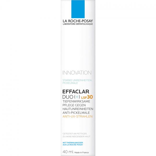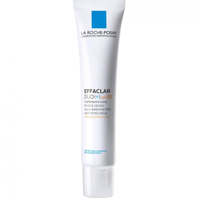 Das EFFACLAR DUO (+) LSF 30 ist eine Pflege für zu Unreinheiten neigende Haut mit täglichem Sonnenschutz. EFFACLAR DUO (+) reinigt verstopfte Poren gründlich und bekämpft die Ursachen unreiner Haut. Dabei wirkt es antioxidativ und wehrt freie Radikale ab, sodass das Hautbild bereits nach kurzer Zeit der Anwendung deutlich verfeinert ist. Mit seiner angenehmen Textur lässt sich das Reinigungsgel leicht auftragen und hinterlässt ein frisches Hautgefühl. Es wird nach der Gesichtsreinigung und vor der weiteren Pflege großflächig im trockenen Gesicht verteilt. Anschließend folgt die tägliche Pflegeroutine mit Tagescremes. EFFACLAR DUO (+) eignet sich mit seiner Geltextur ebenso gut als Make-up-Basis. Das Gel ist außerdem pH-hautneutral sowie für empfindliche Haut geeignet. Die Pflege mit Thermalwasser beruhigt sensible Hautpartien. Eine Rund-um-Pflege, welche effektiv wirkt, ohne die Haut zu reizen.