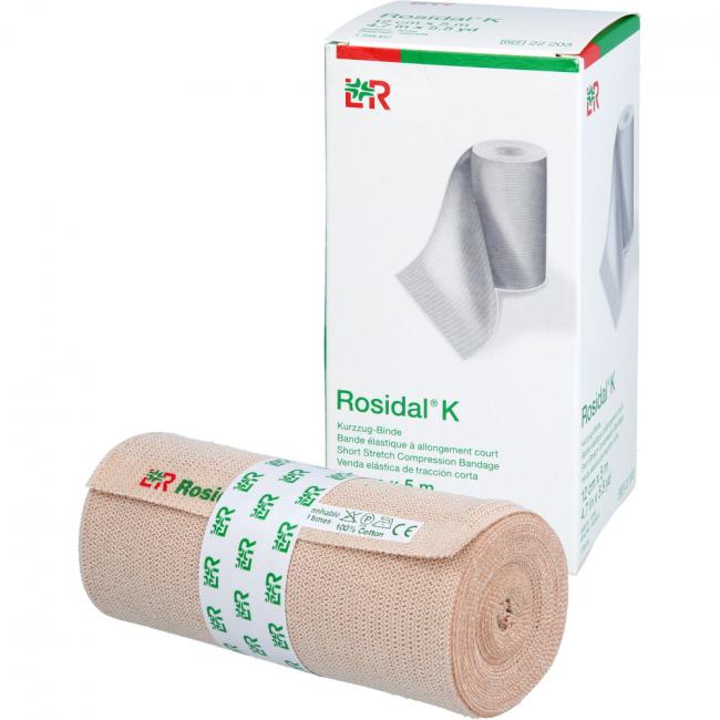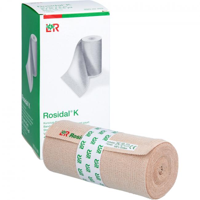 Um ans Therapieziel zu gelangen, sind Binden erforderlich, die dehnungsfähig sind und zugleich Druck ausüben. Bei der Kurzzugbinde Rosidal K handelt es sich um eine kräftig komprimierende sowie textilelastische Binde mit kurzem Zug. Diese dient der starken Kompression von Extremitäten in der phlebologischen Therapie. Darüber hinaus wird sie auch zur Behandlung akuter und chronischer Lymphödeme eingesetzt und findet zum Stützen und Entlasten in der Traumatologie und Sportmedizin Anwendung. Die Binden sind angenehm luftdurchlässig und besonders hautsympathisch. Durch die griffige Gewebestruktur haben die Bindentouren einen guten Halt aufeinander. Um die Sicherheit gegen das Verrutschen der Binde weiter zu erhöhen, kann unterstützend die kohäsive Kurzzugbinde Rosidal haft eingesetzt oder ein Abschlussrand mit einer kohäsiven Fixierbinde wie Mollelast haft gebildet werden.