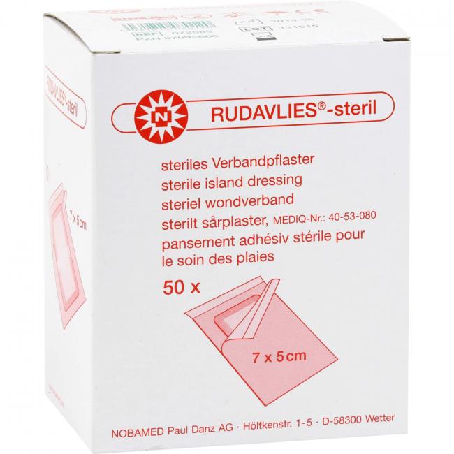 Pflichtangaben RUDAVLIES-steril Verbandpflaster 5x7 cm, 50 Stück