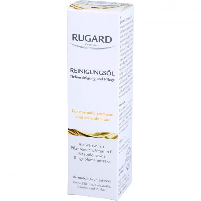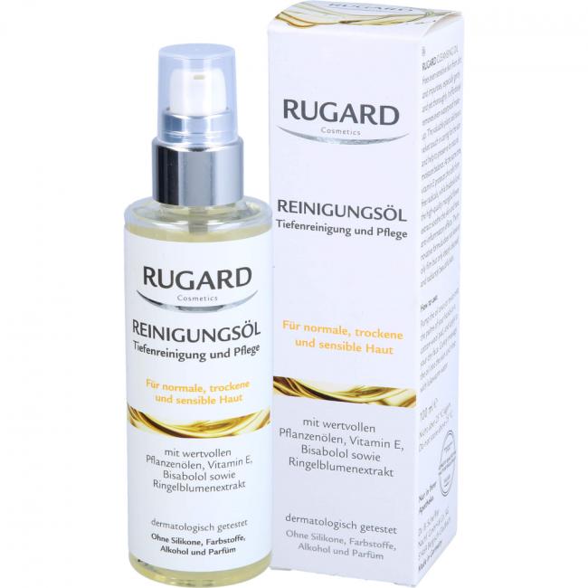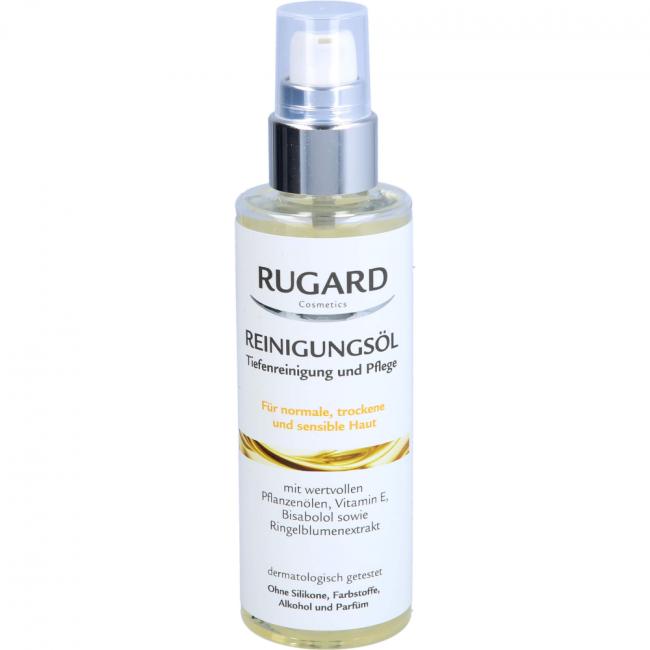 Das Rugard Reinigungsöl befreie selbst empfindliche Haut besonders schonend und dennoch gründlich von Verschmutzungen sowie Unreinheiten. Sogar wasserfestes Make-up entfernt es mühelos. Die wertvollen Pflanzenöle pflegen die Haut zudem samtweich und helfen, die natürliche Feuchtigkeitsbalance zu bewahren. Gleichzeitig schützt Vitamin E die Zellen vor freien Radikalen und Bisabolol sowie der hochwertige Ringelblumenextrakt wirken hautberuhigend und entzündungshemmend. Die innovative Formel hinterlässt keinen öligen Film, sondern nur tiefenreine und strahlend schöne Haut.