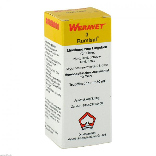 Pflichtangaben RUMISAL 3 Tropfen vet., 50 Milliliter