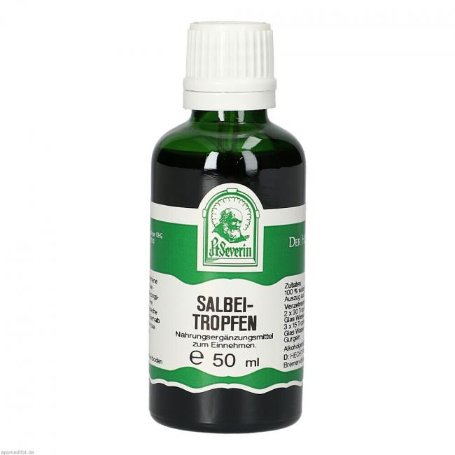 Salbeitropfen enthalten einen hochwertigen wässrig/alkoholischen Auszug aus Salbeiblättern. Der Auszug wird nach Vorgaben des Arzneibuches im Verhältnis 1:5 hergestellt. Allergene: keine