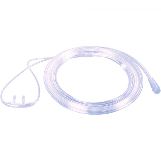 Sauerstoffbrille mit geradem, oder gekrümmten Ansatz und zwei Kanülen zur kontinuierlichen (Langzeit-)Versorgung mit konzentriertem Sauerstoff über die Nase. Versorgungsschlauch mit Sternlumen und Standard-Konnektor zum Anschluss an ein Sauerstoffgerät.