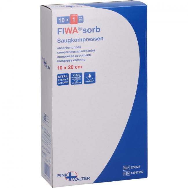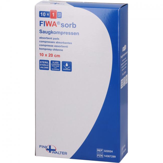 Pflichtangaben SAUGKOMPRESSEN steril 10x20 cm Vlies FIWAsorb, 10 Stück