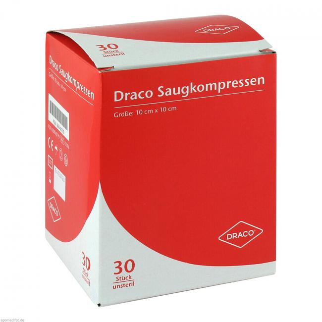 Pflichtangaben SAUGKOMPRESSEN unsteril 10x10 cm Draco, 30 Stück