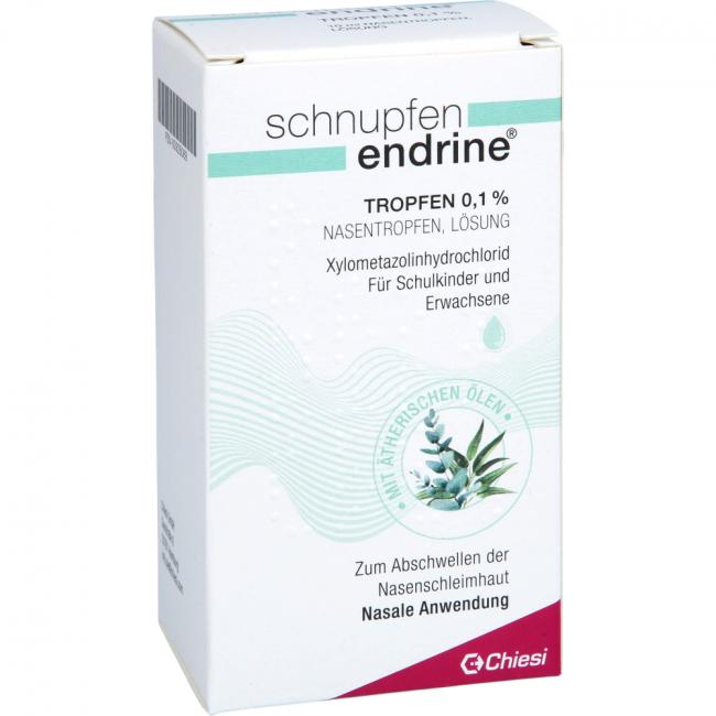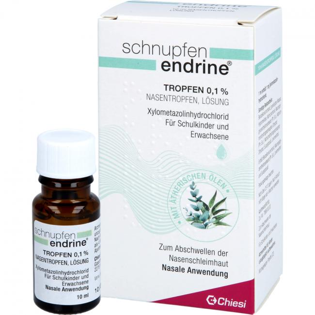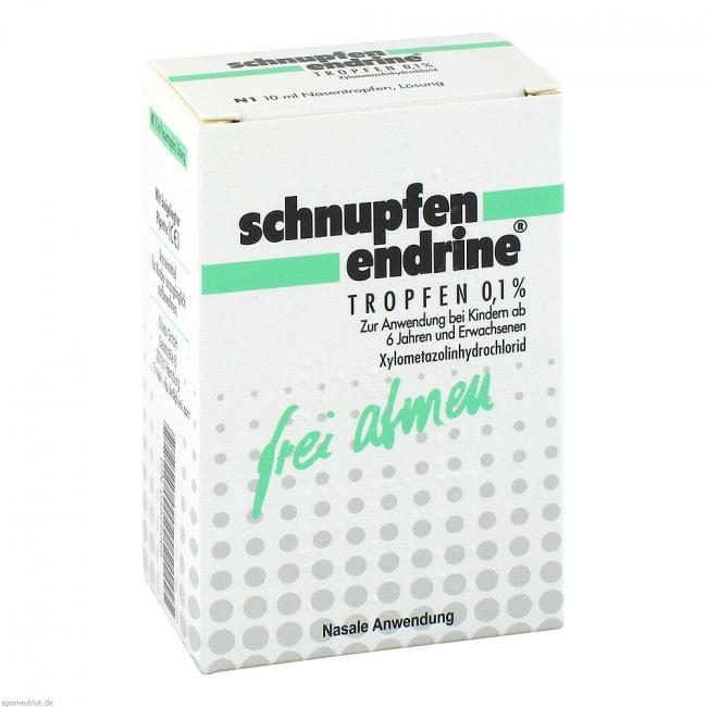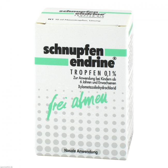 schnupfen endrine Tropfen 0,1% ist ein Mittel zur Anwendung in der Nase (Rhinologikum) und enthält das Alpha-Sympathomimetikum Xylometazolin. Xylometazolin hat gefäßverengende Eigenschaften und bewirkt dadurch eine Schleimhautabschwellung. schnupfen endrine Tropfen 0,1% wird angewendet zur Kurzzeittherapie bei Anschwellungen (Kongestion) der Nasenschleimhaut. schnupfen endrine Tropfen 0,1% ist zur Anwendung bei Kindern ab 6 Jahren und Erwachsenen bestimmt.
