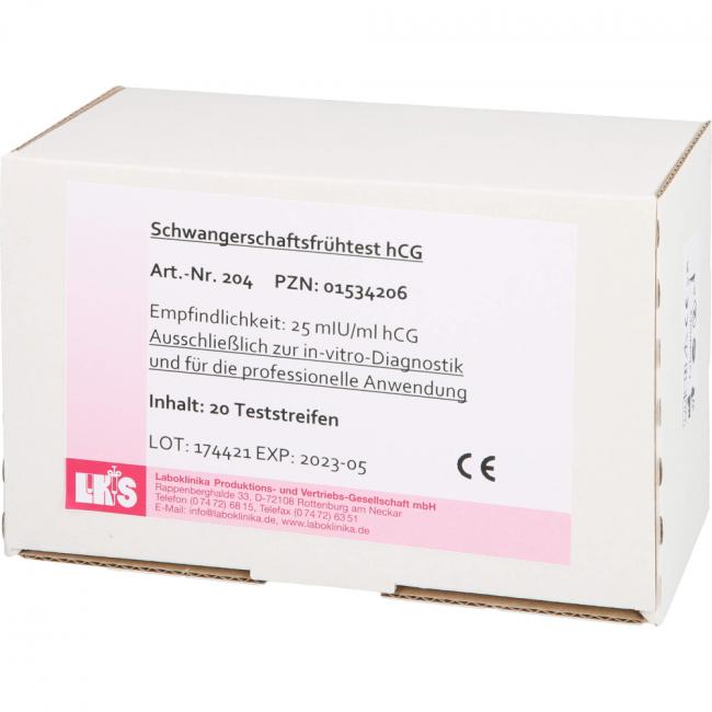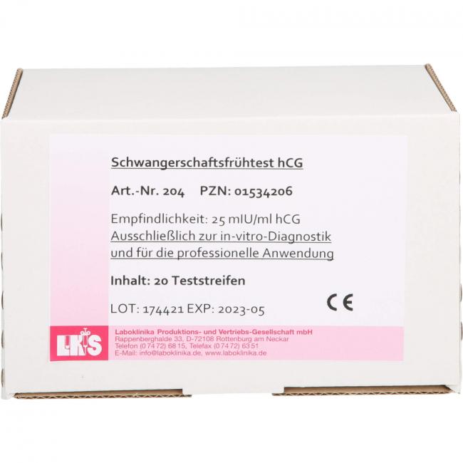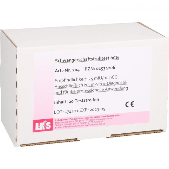 Pflichtangaben SCHWANGERSCHAFTS-FRÜHTEST hCG Teststreifen Urin, 20 Stück