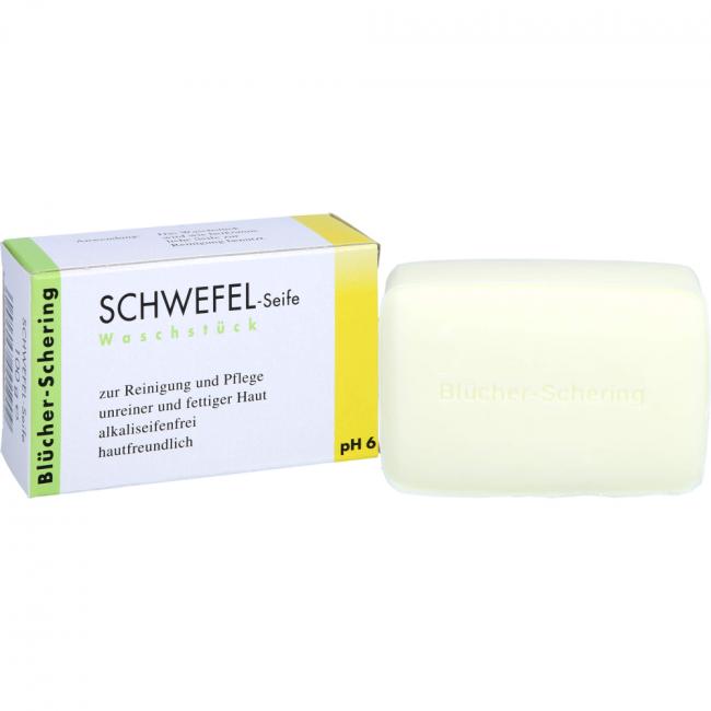 Schwefel-Seife "Blücher-Schering" wird zur Reinigung und Pflege unreiner und fettiger Haut verwendet. Sie ist dabei alkaliseifenfrei und hautfreundlich und wird dabei wie herkömmliche Seife zur Reinigung benutzt. Schwefel-Seife "Blücher-Schering" enthält 5 g gereinigten Schwefel in 100 g seifenfreier Waschgrundlage.