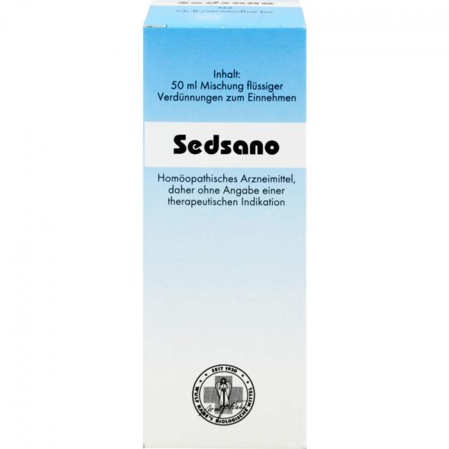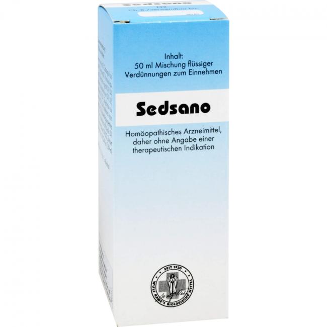 Sedsano, flüssige Verdünnung. Anwendungsgebiete: Homöopathisches Arzneimittel, daher ohne Angabe einer therapeutischen Indikation. Warnhinweis: Enthält 63,5 Vol.-% Alkohol!
