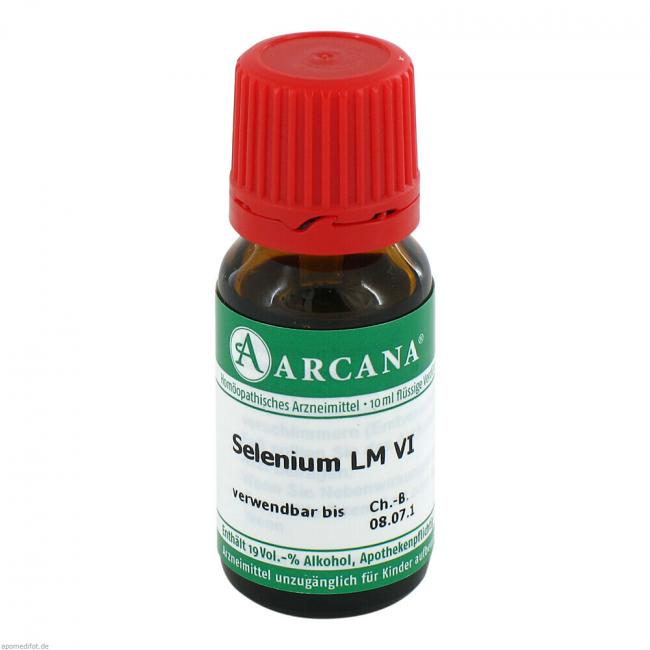 Selenium LM VI . Anwendungsgebiete: Registriertes homöopathisches Arzneimittel, daher ohne Angabe einer therapeutischen Indikation. Warnhinweis: Enthält 19 Vol.-% Alkohol.