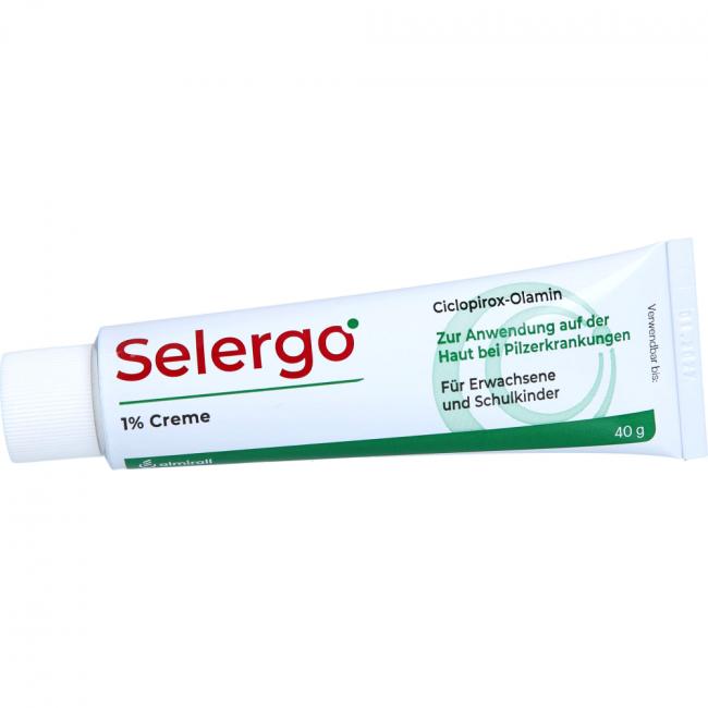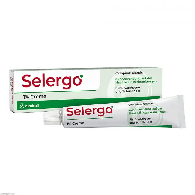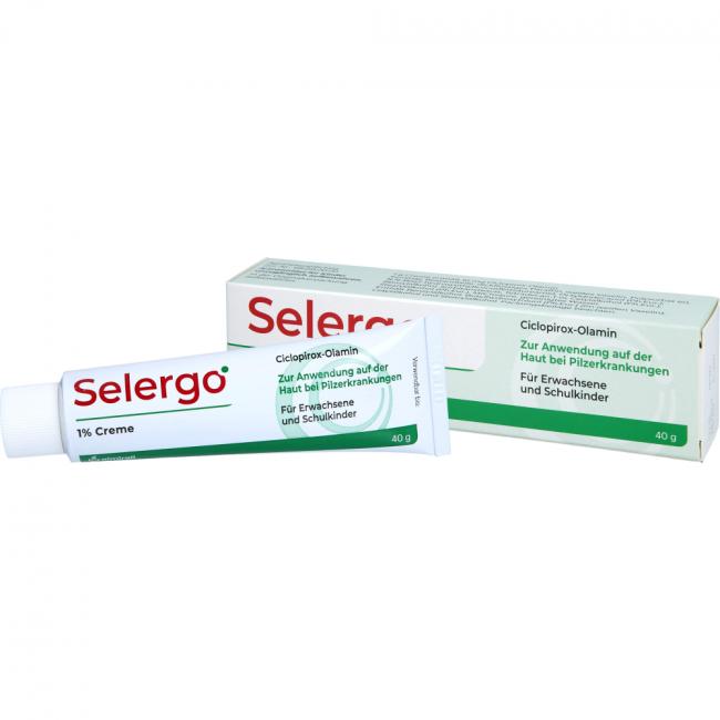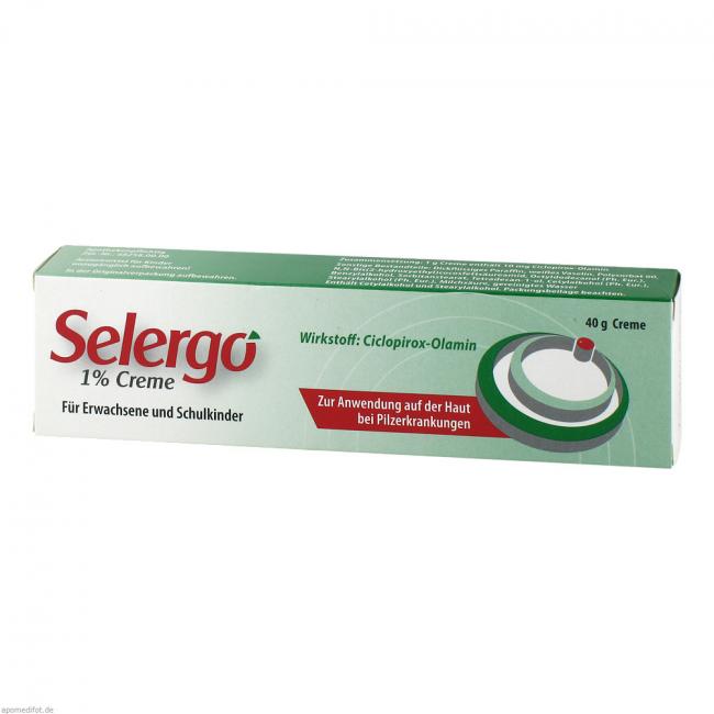 Selergo 1% Creme. Wirkstoff: Ciclopirox-Olamin. Anwendungsgebiete: zur Behandlung von Pilzerkrankungen der Haut.