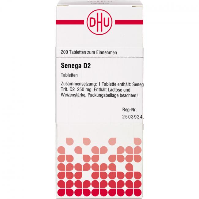 Senega D 2. Anwendungsgebiete: Registriertes homöopathisches Arzneimittel daher ohne Angabe einer therapeutischen Indikation. Warnhinweis: Enthält Lactose (Milchzucker) und Weizenstärke.