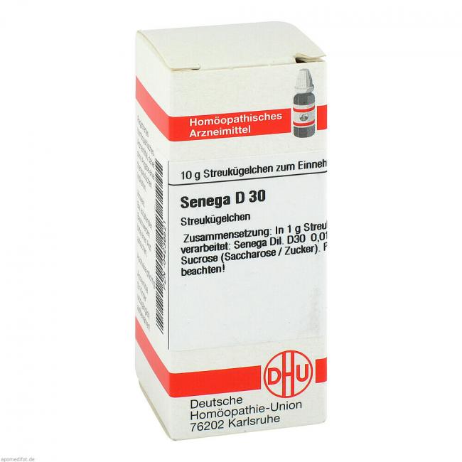 Senega D 30. Anwendungsgebiete: Registriertes homöopathisches Arzneimittel, daher ohne Angabe einer therapeutischen Indikation. Warnhinweis: Dieses Arzneimittel enthält Sucrose (Saccharose / Zucker).