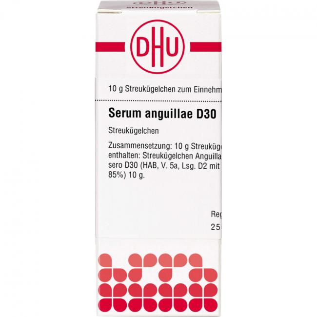SERUM ANGUILLAE D 30 Globuli. Anwendungsgebiete: Anwendungsgebiete: Registriertes homöopathisches Arzneimittel, daher ohne Angabe einer therapeutischen Indikation. Warnhinweis: Dieses Arzneimittel enthält Sucrose (Saccharose / Zucker).