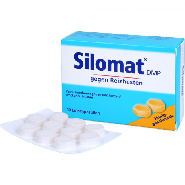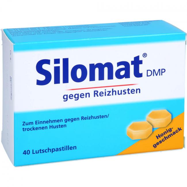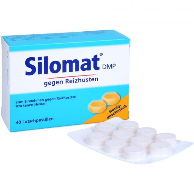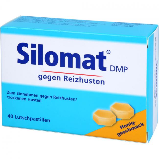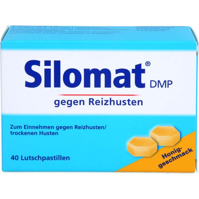 Silomat DMP gegen Reizhusten, Lutschpastille mit echtem Honig. Wirkstoff: Dextromethorphanhydrobromid-Monohydrat. Anwendungsgebiete: zur symptomatischen Behandlung von Reizhusten.