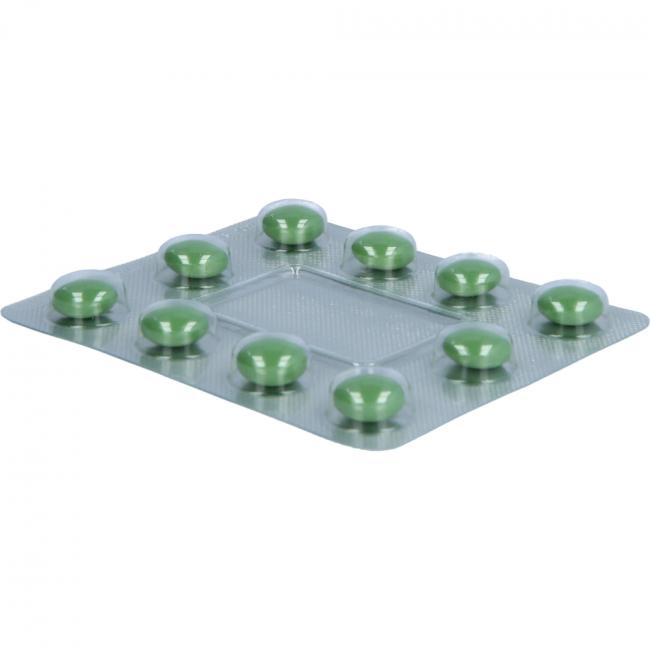 Zusammensetzung: 1 überzogene Tablette enthält: Wirkstoff: 160,00 mg Trockenextrakt (3-6:1) aus Enzianwurzel, Schlüsselblumenblüten, Ampferkraut, Holunderblüten, Eisenkraut (1:3:3:3:3) 1. Auszugsmittel: Ethanol 51%. Die sonstigen Bestandteile sind: Sprühgetrocknetes Arabisches Gummi, Calciumcarbonat, Carnaubawachs, Cellulosepulver, mikrokristalline Cellulose, Chlorophyll-Pulver 25% (E140), Dextrin, Glucose-Sirup, Hypromellose, Indigocarmin, Aluminiumsalz (E 132), Magnesiumstearat, Maltodextrin, Riboflavin (E 101), hochdisperses Siliciumdioxid, hochdisperses hydrophobes Siliciumdioxid, Saccharose, Stearinsäure, Talkum, Titandioxid (E 171).