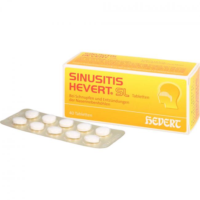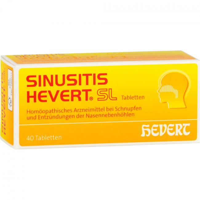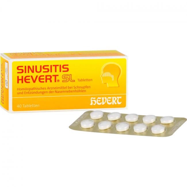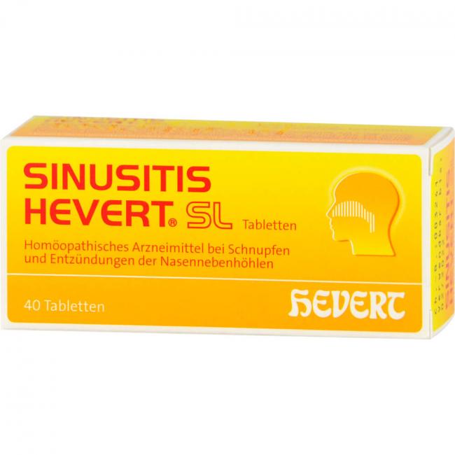 Sinusitis Hevert SL, Tabletten. Anwendungsgebiete: Die Anwendungsgebiete leiten sich von den homöopathischen Arzneimittelbildern ab. Dazu gehören: Entzündungen des Hals-Nasen-Rachenraumes und der Nasennebenhöhlen (Sinusitis).