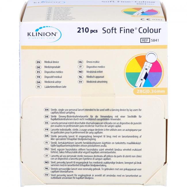 Produktinformationen SOFT FINE colour Lanzetten 28 G 0,36 mm, 210 Stück